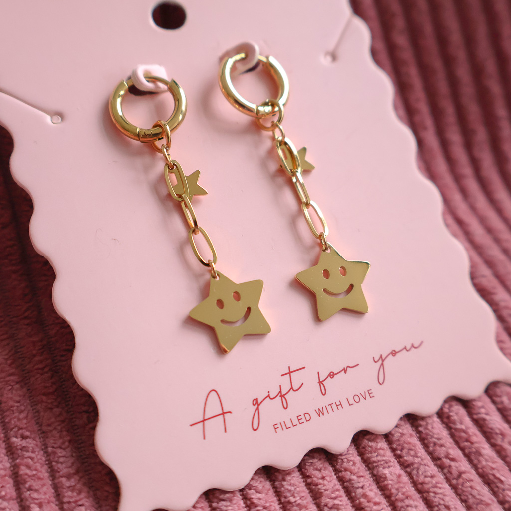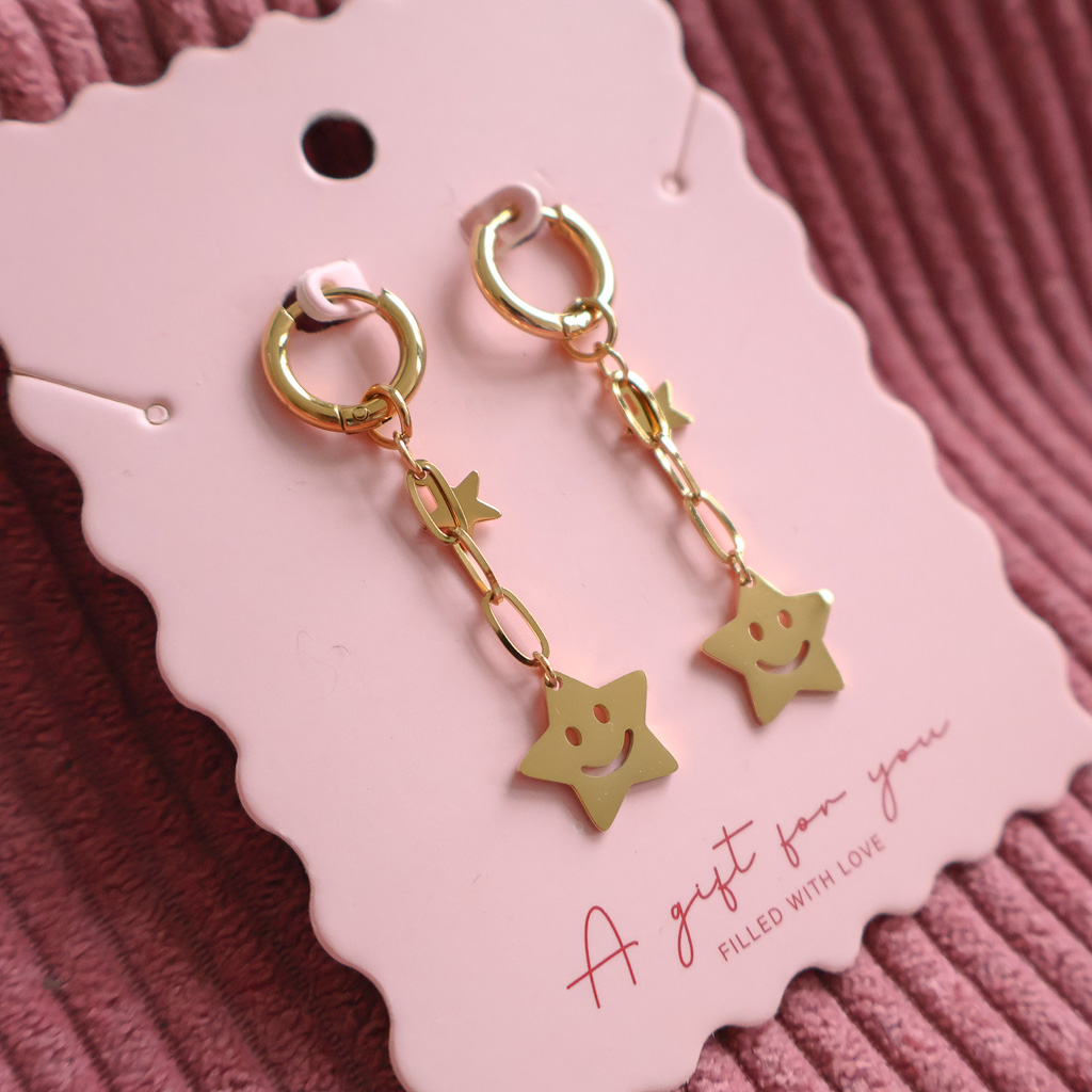 Gouden Happy Stars Oorbellen – RVS